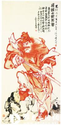 进入展厅,首幅作品即是任伯年于1878年作的朱笔重彩《钟进士斩狐图》。任伯年是目前所知画钟馗最多、艺术水平最为精湛的画家。据称,目前所知任伯年钟馗画传世约10多件,绝大部分为国内各美术馆、博物馆所收藏。