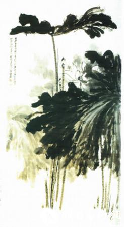 赴敦煌临摹佛教壁画,通过细心揣摩佛画中莲花宝座的造型,张大千领悟到了荷花的轮廓线条和神韵之间的关系。敦煌归来,他的荷花为之一变。展出中一幅张大千创作于1945年的《墨荷》,泼墨拙厚飘逸,以草书笔法为之,行笔奔放,清新中见精神。