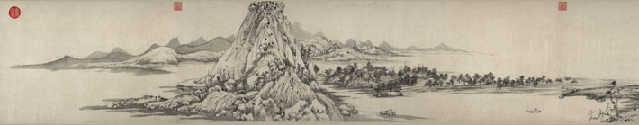 《富春山居图》是黄公望为无用师和尚所绘,以浙江富春江为背景,全图用墨淡雅,山和水的布置疏密得当,墨色浓淡干湿并用,极富于变化,是黄公望的代表作,被列为中国十大传世名画之一,亦被称为“中国山水画第一神品”。